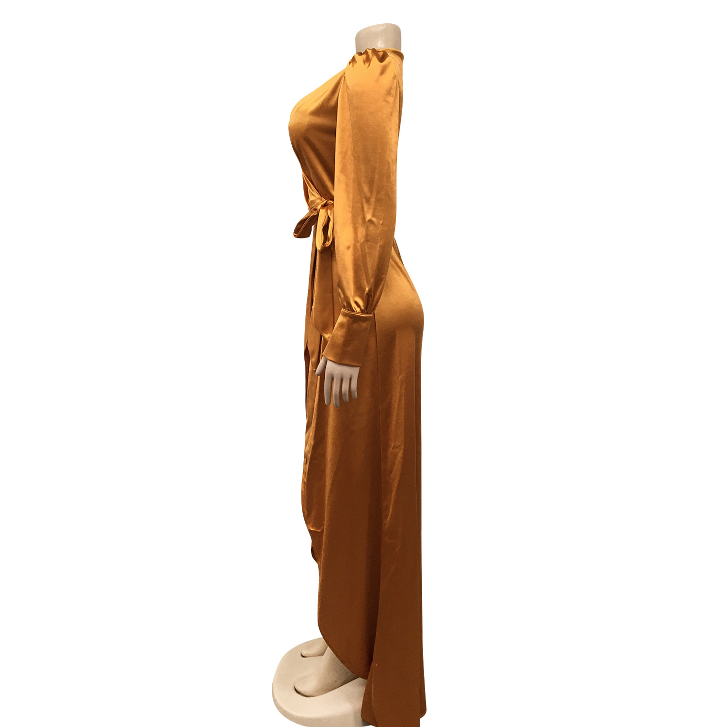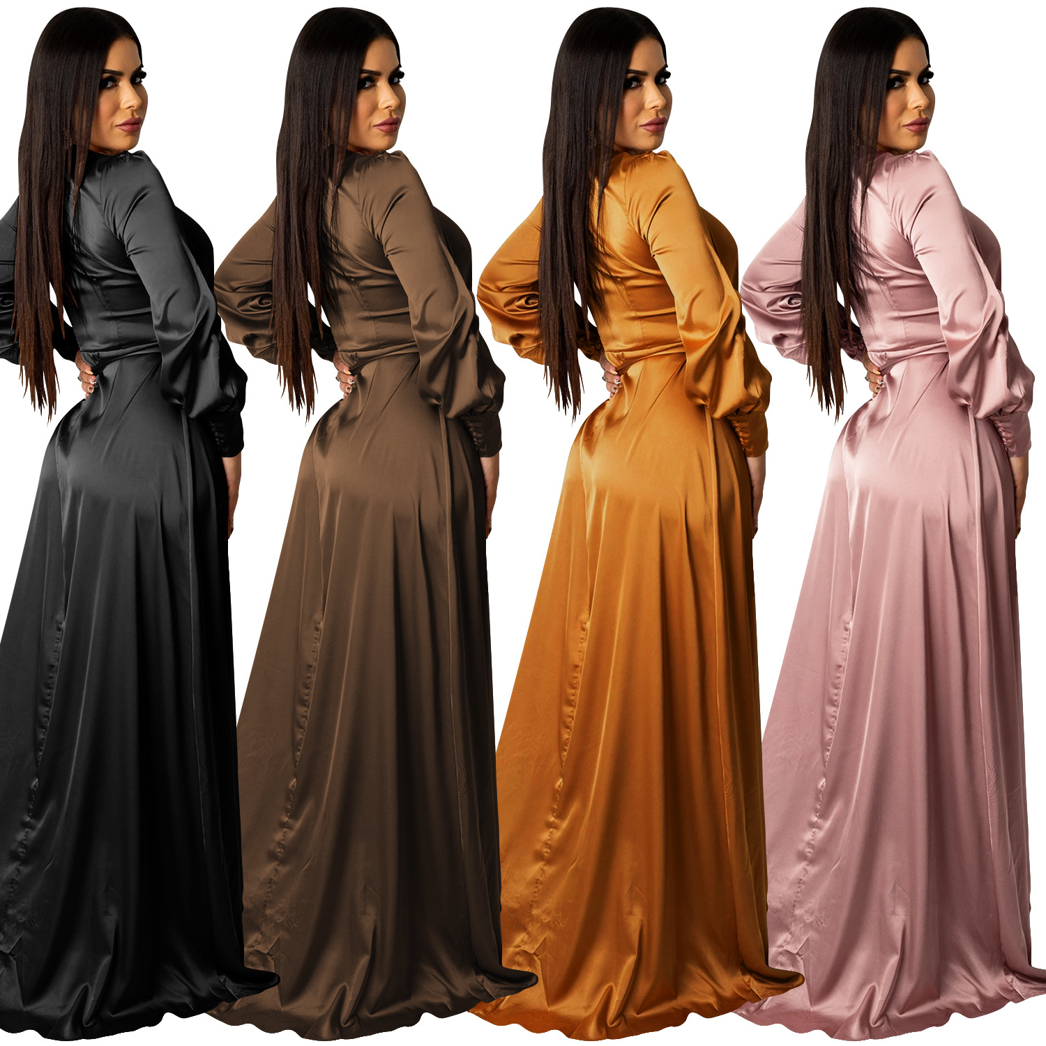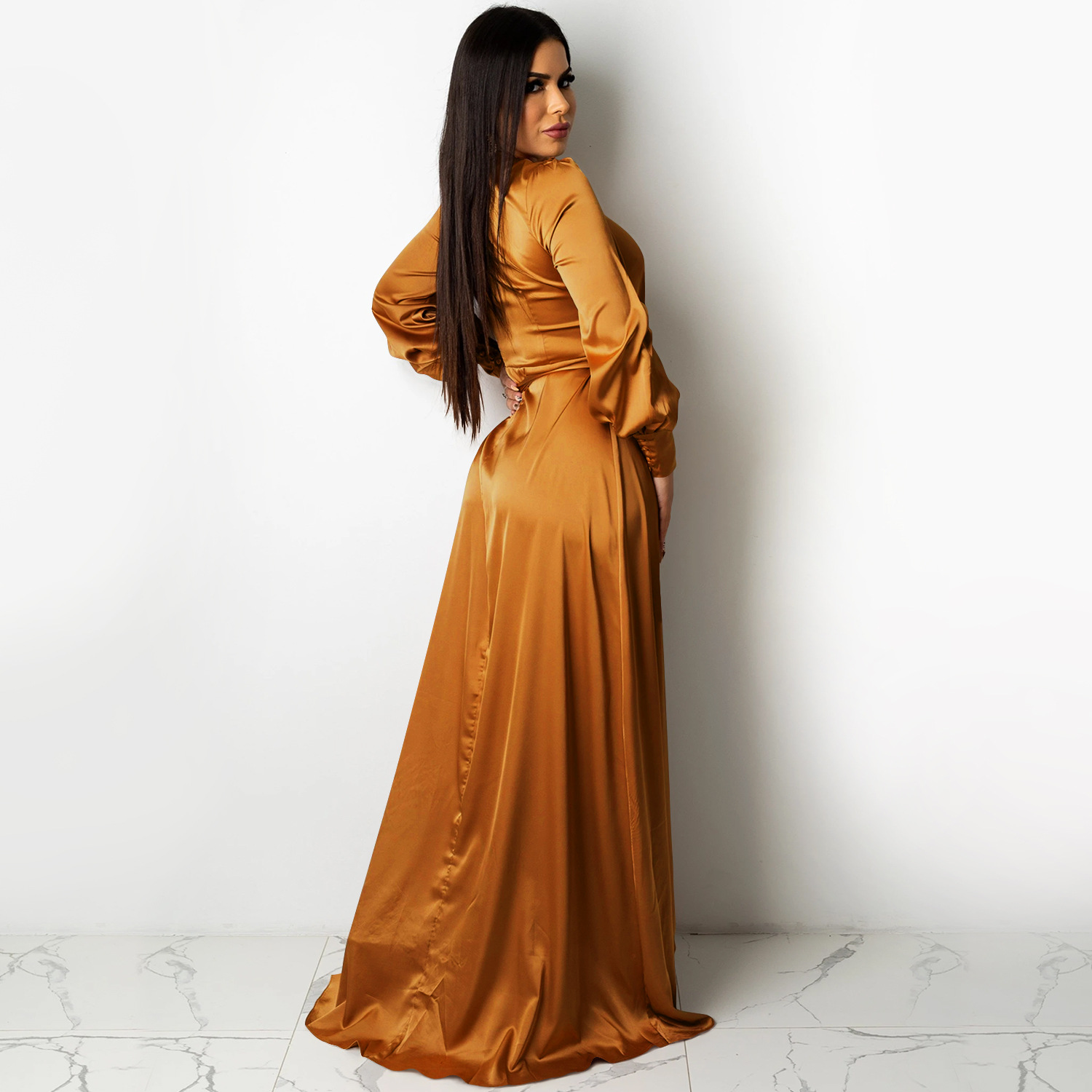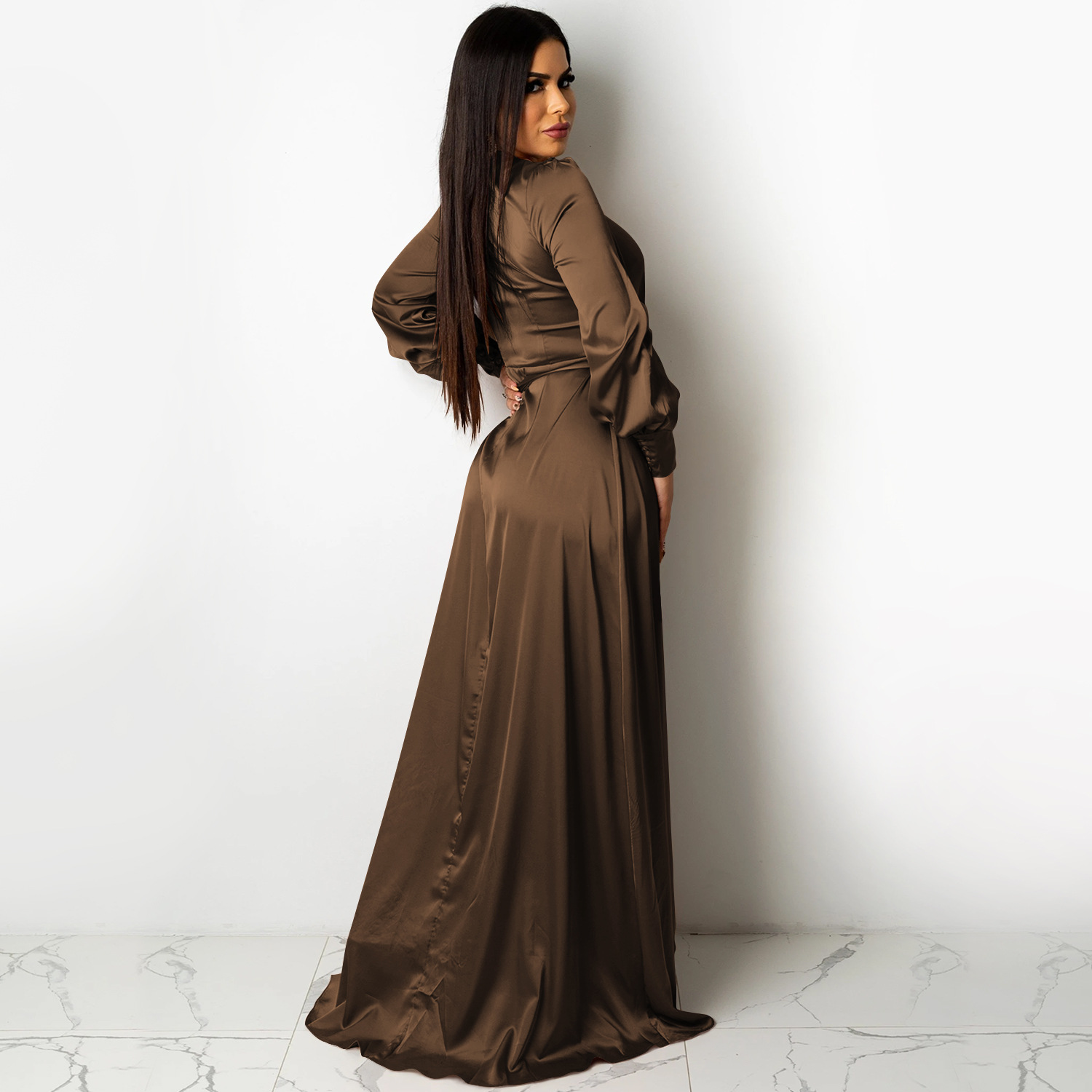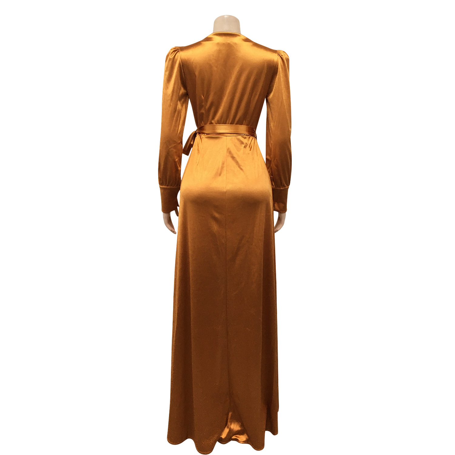 Fashion Sexy Solid Color Women's Deep V-Bandage Long Sleeve Split Maxi Dress