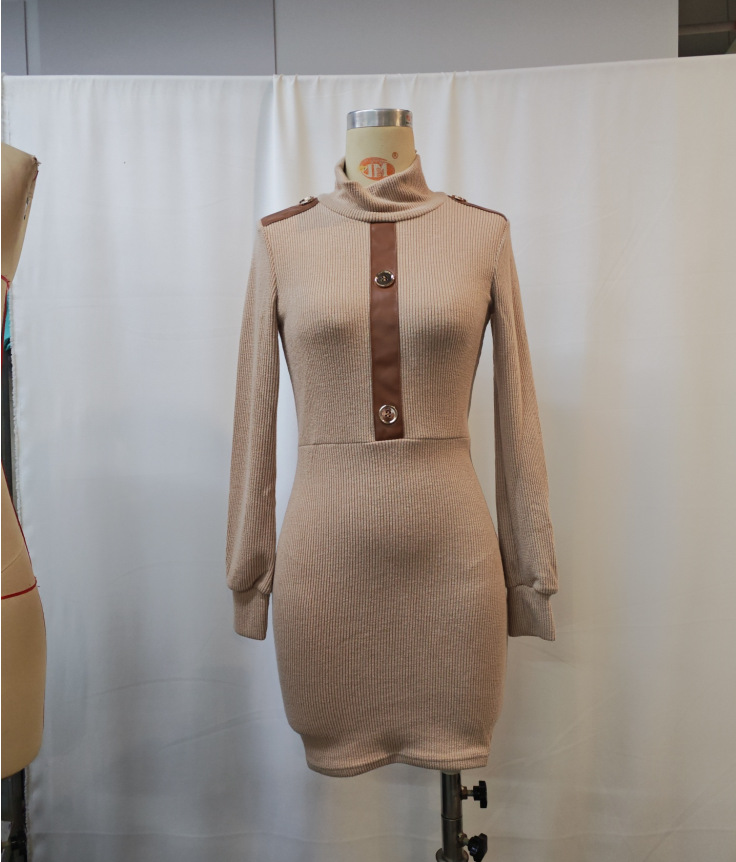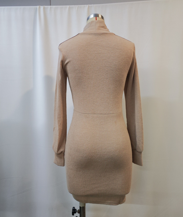High Neck Knit Dress for Women Autumn Winter Fitted Bodycon Sweater Dress